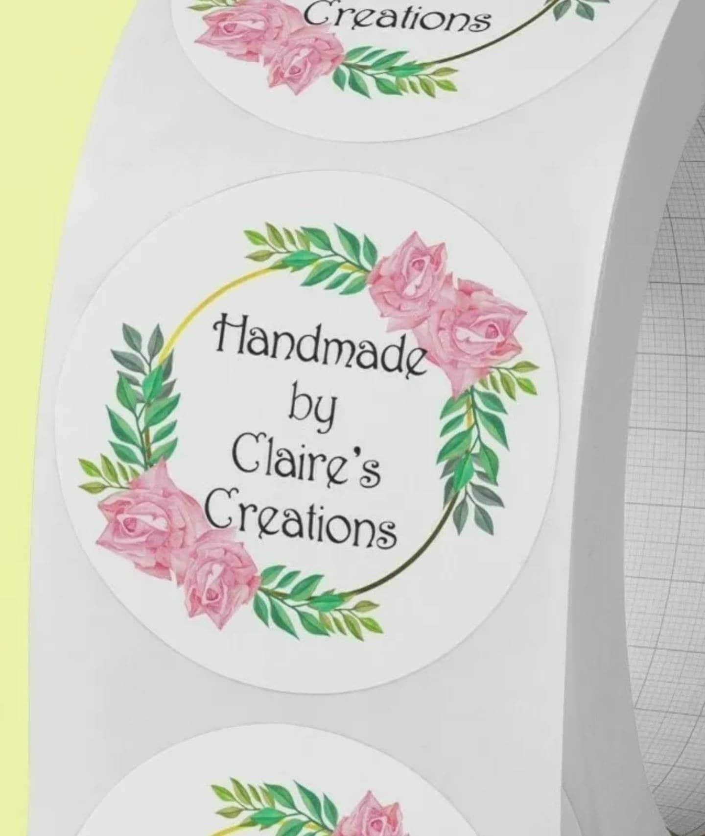 Personalised handmade by floral design customised name label. Packaging. Branding craft crochet knit sticker envelope box. Business crafting