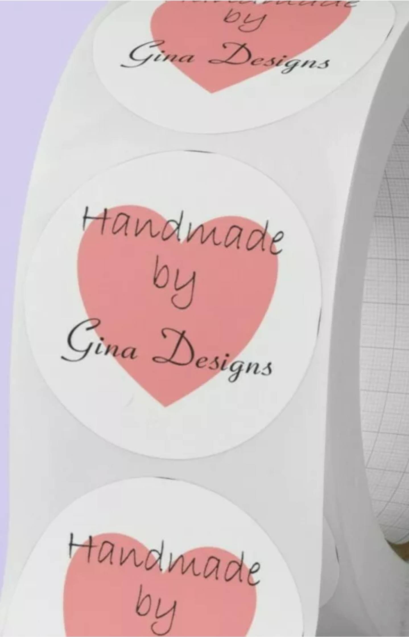 Personalised handmade by heart design customised name label. Packaging. Branding craft knit sew melt sticker envelope box. Business crafting