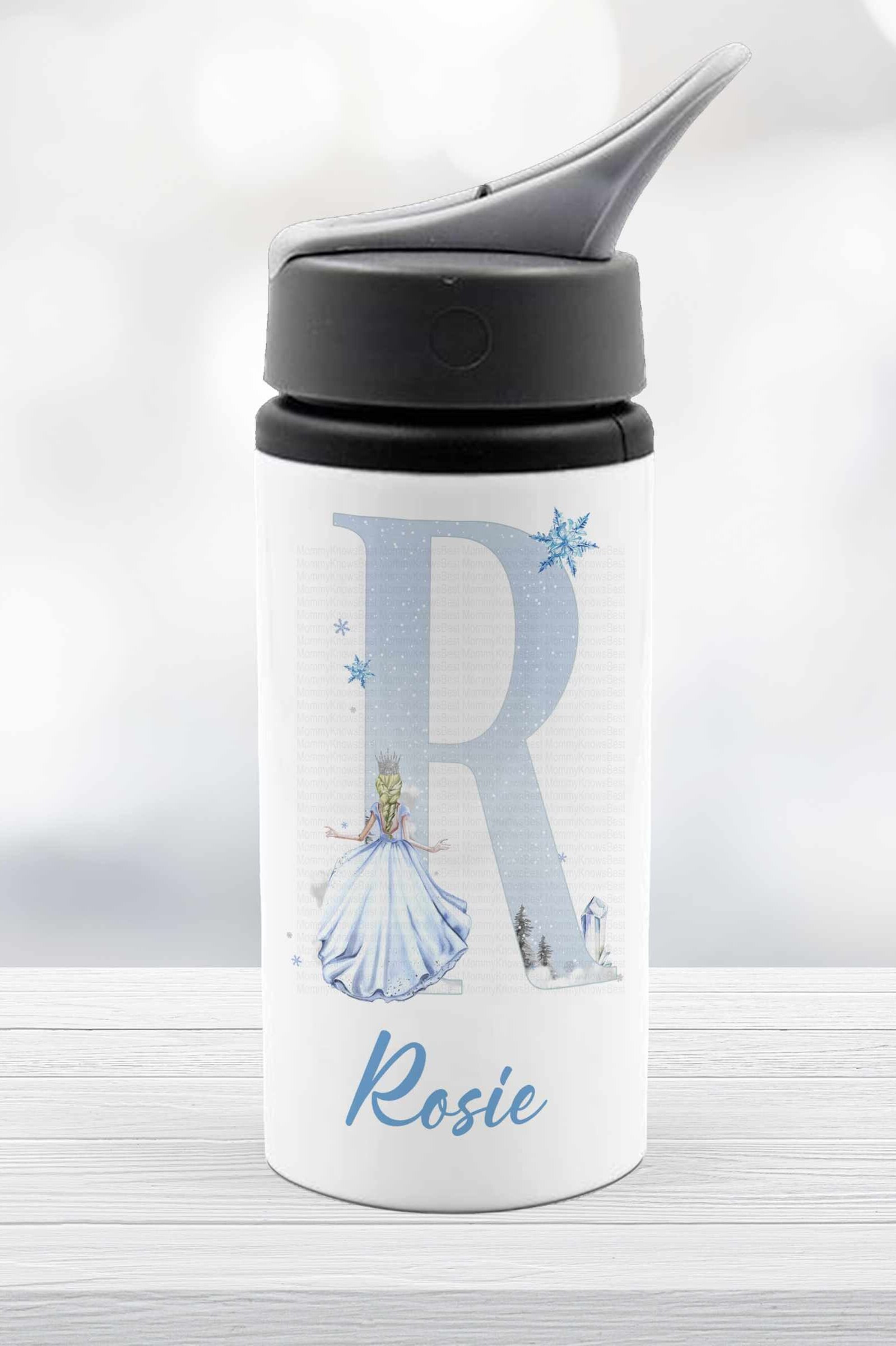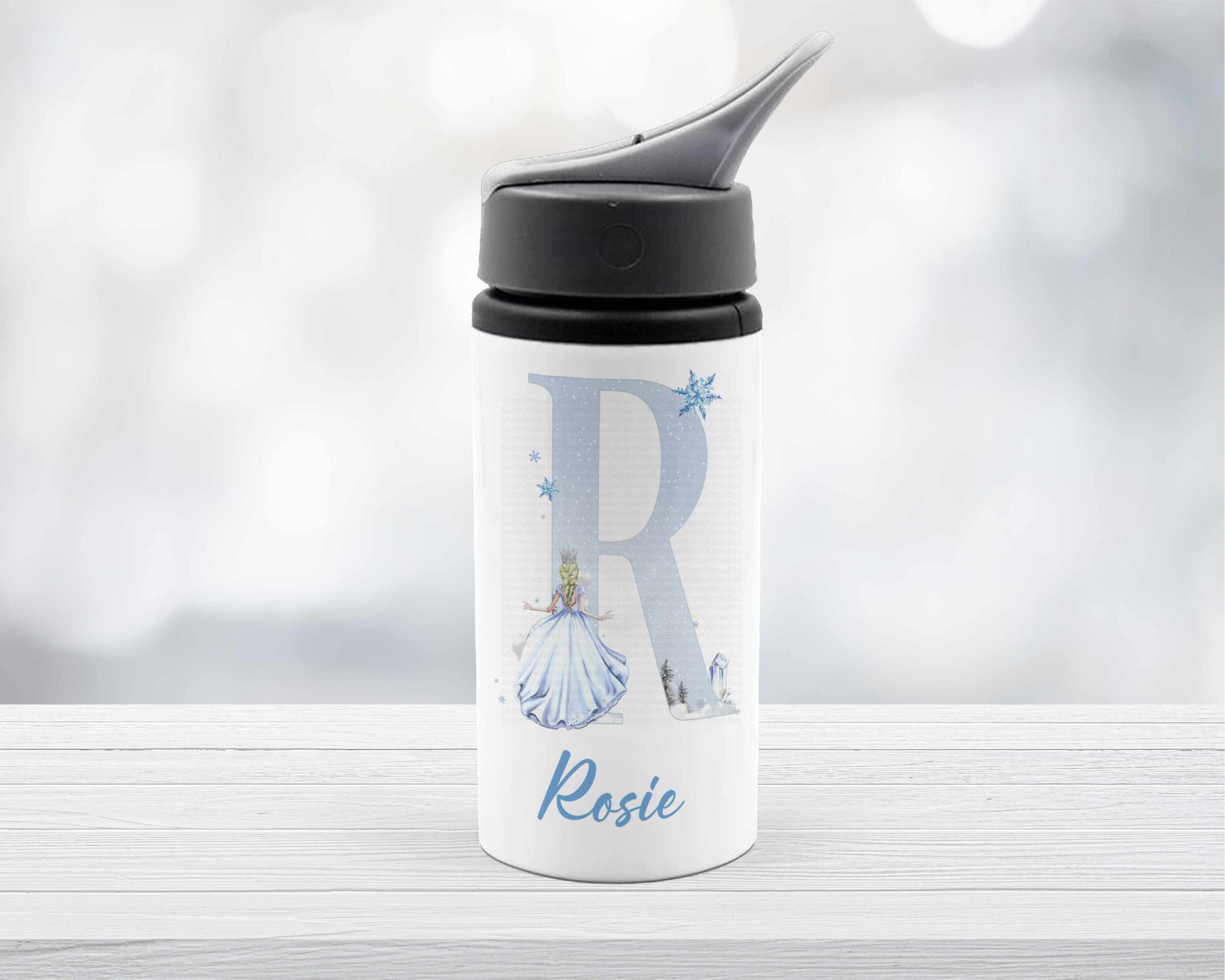 Princess Snow Fairy / Ice Fairy fairytale drink water bottle, personalised with child’s name
