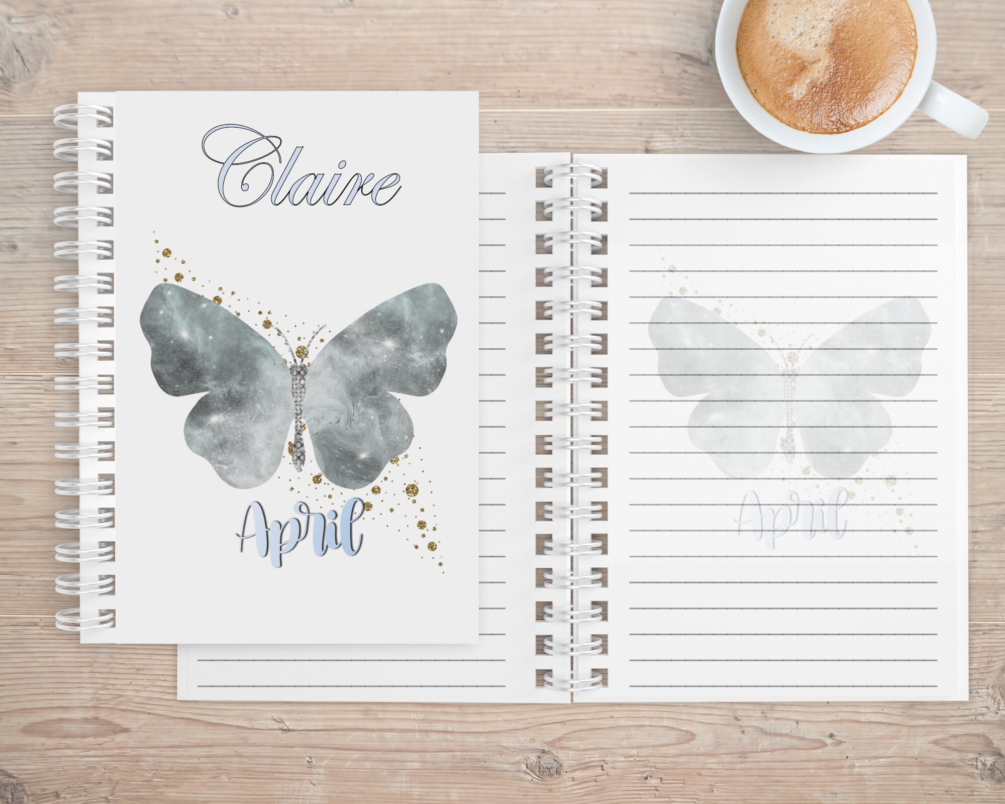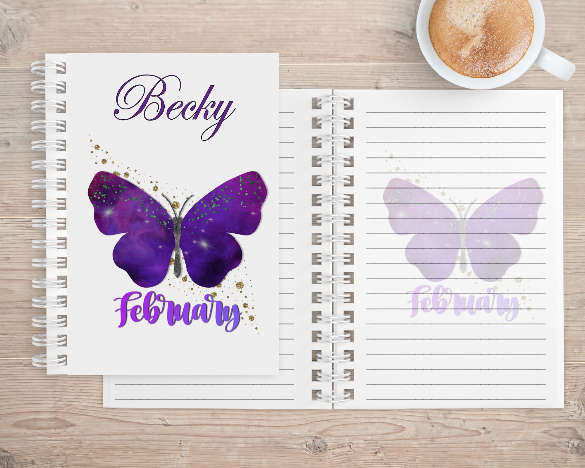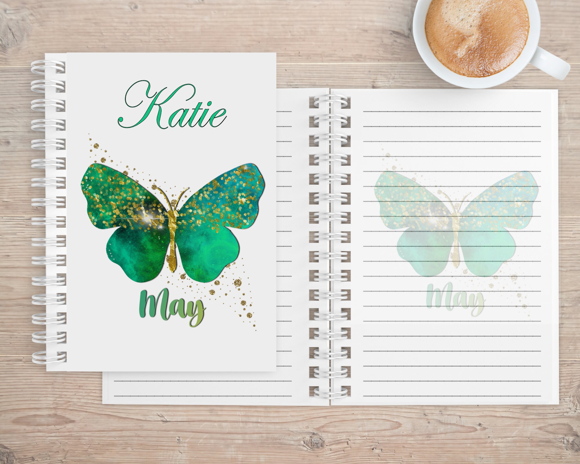 The notebook is available with image of Butterfly and birth month inlaid on either 1 side or both sides.