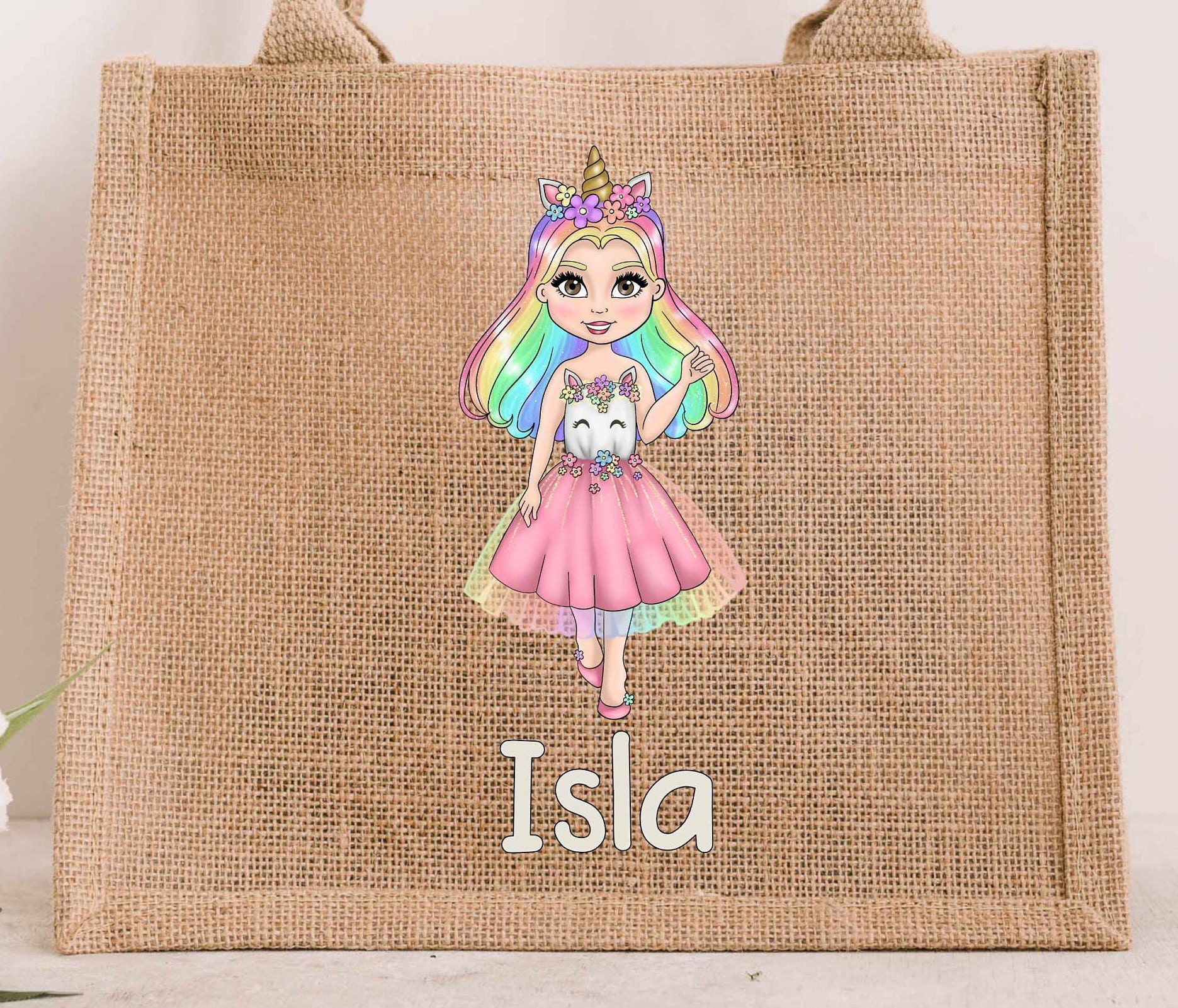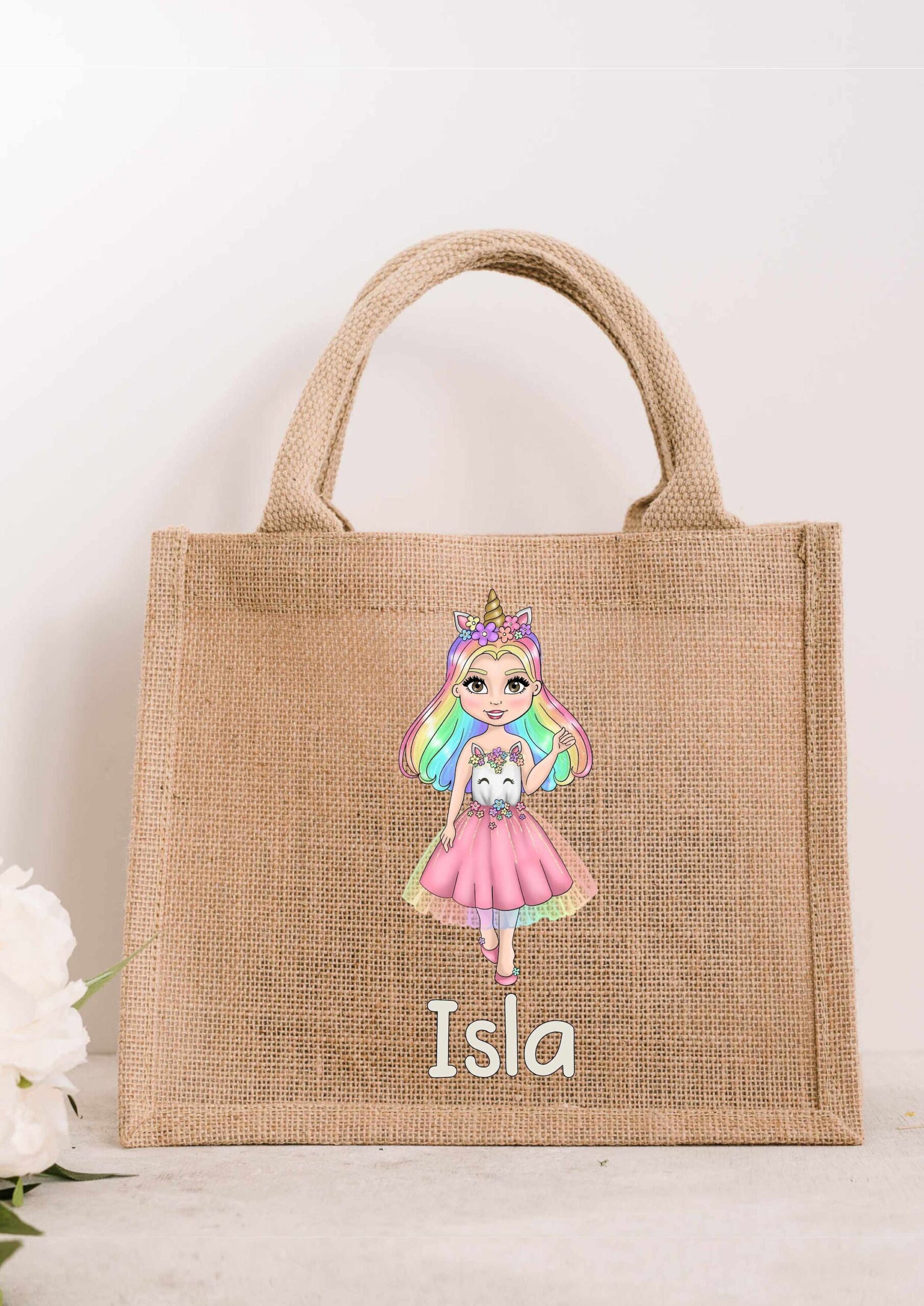 Princess unicorn Jute Bag personalised with any name – Luxury Gift Bag.