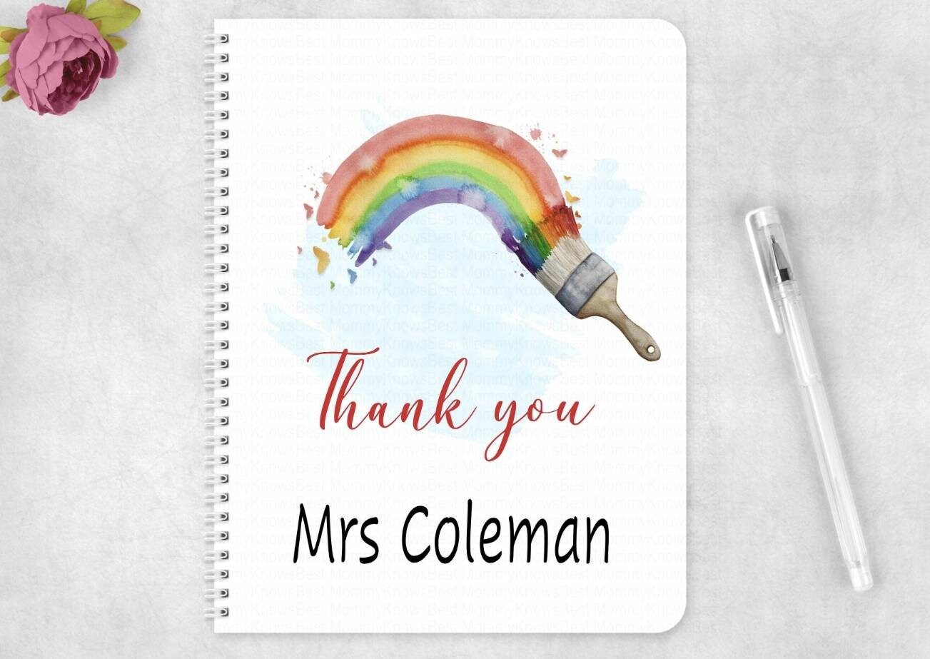 Personalised Thank hi teacher rainbow paintbrush eco friendly notebook.
