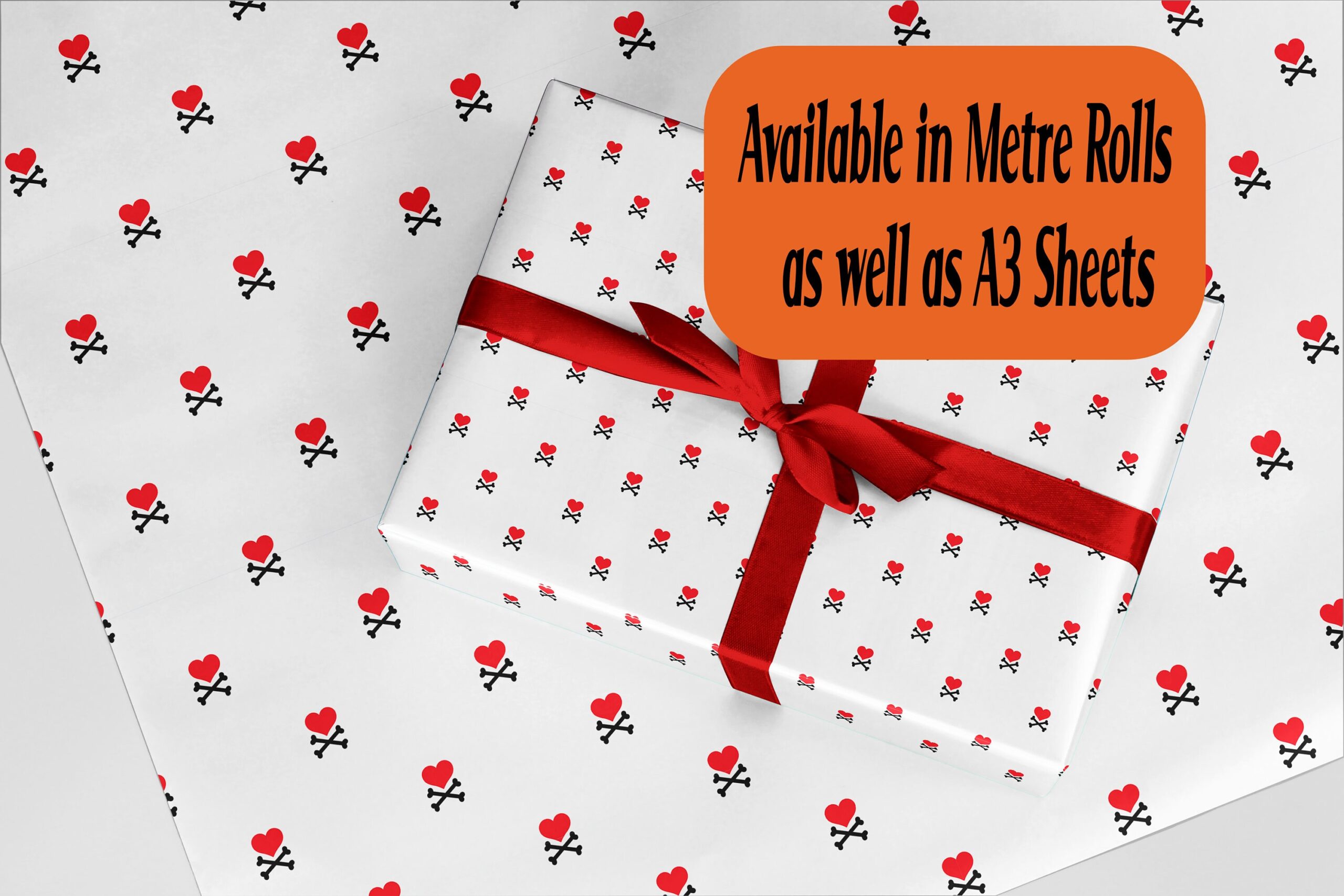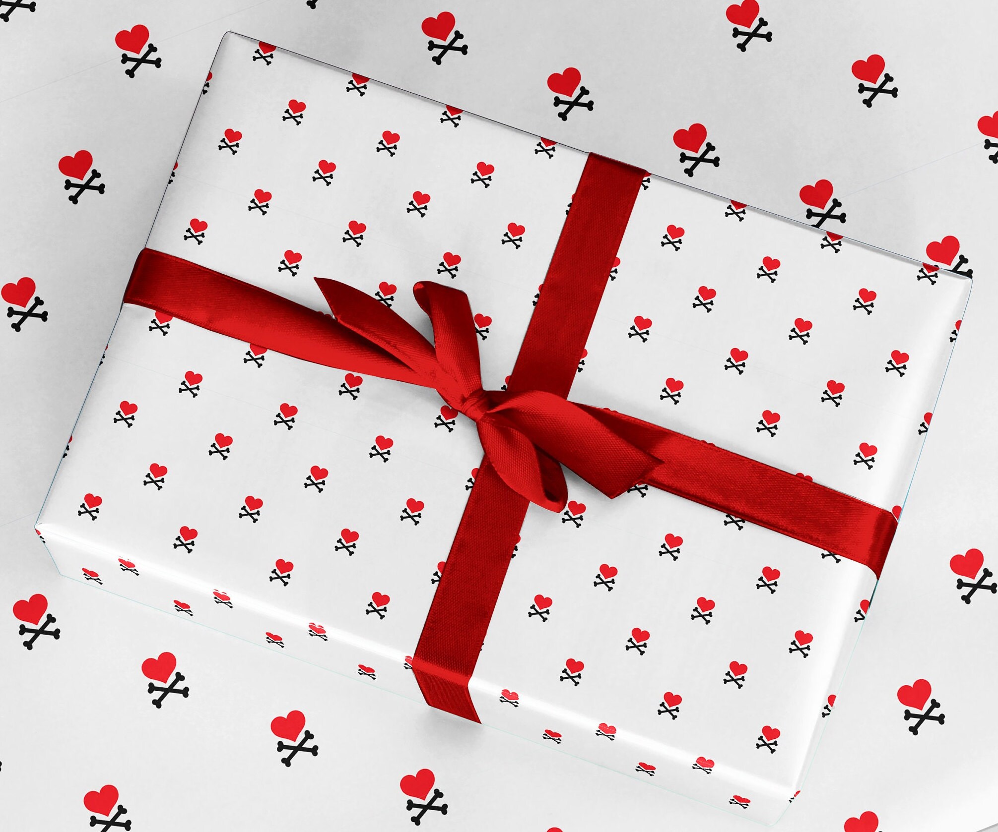 Red Heart on Crossbones design Wrapping Paper. Eco friendly thick quality gift wrap paper Perfect Birthday Valentine Xmas presents.