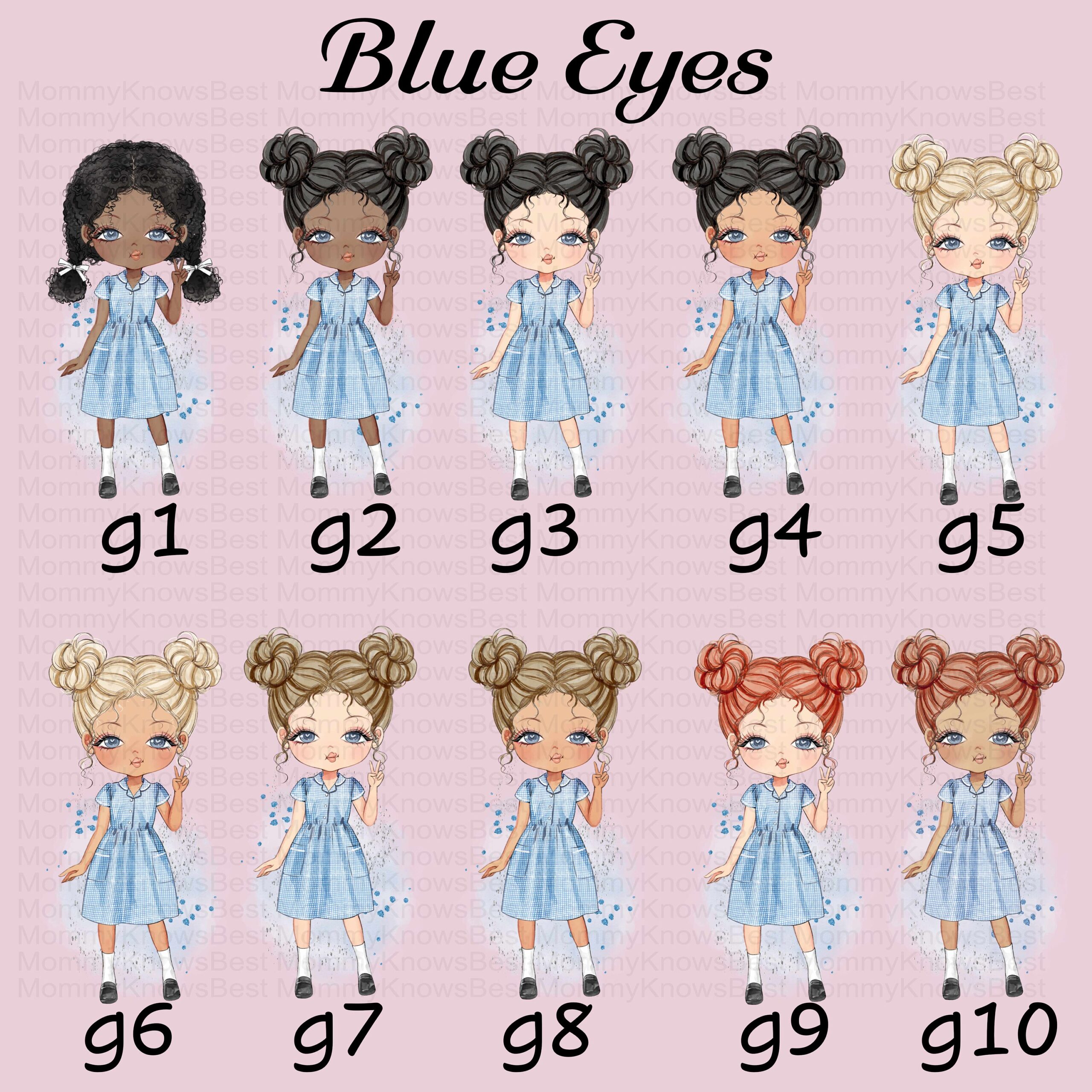 Children’s 500ml drink water bottle, personalised with child’s name. This is for a blue uniformed girl, with the choice of hair colour, eye colour and skin tone, to personalise especially for your child.