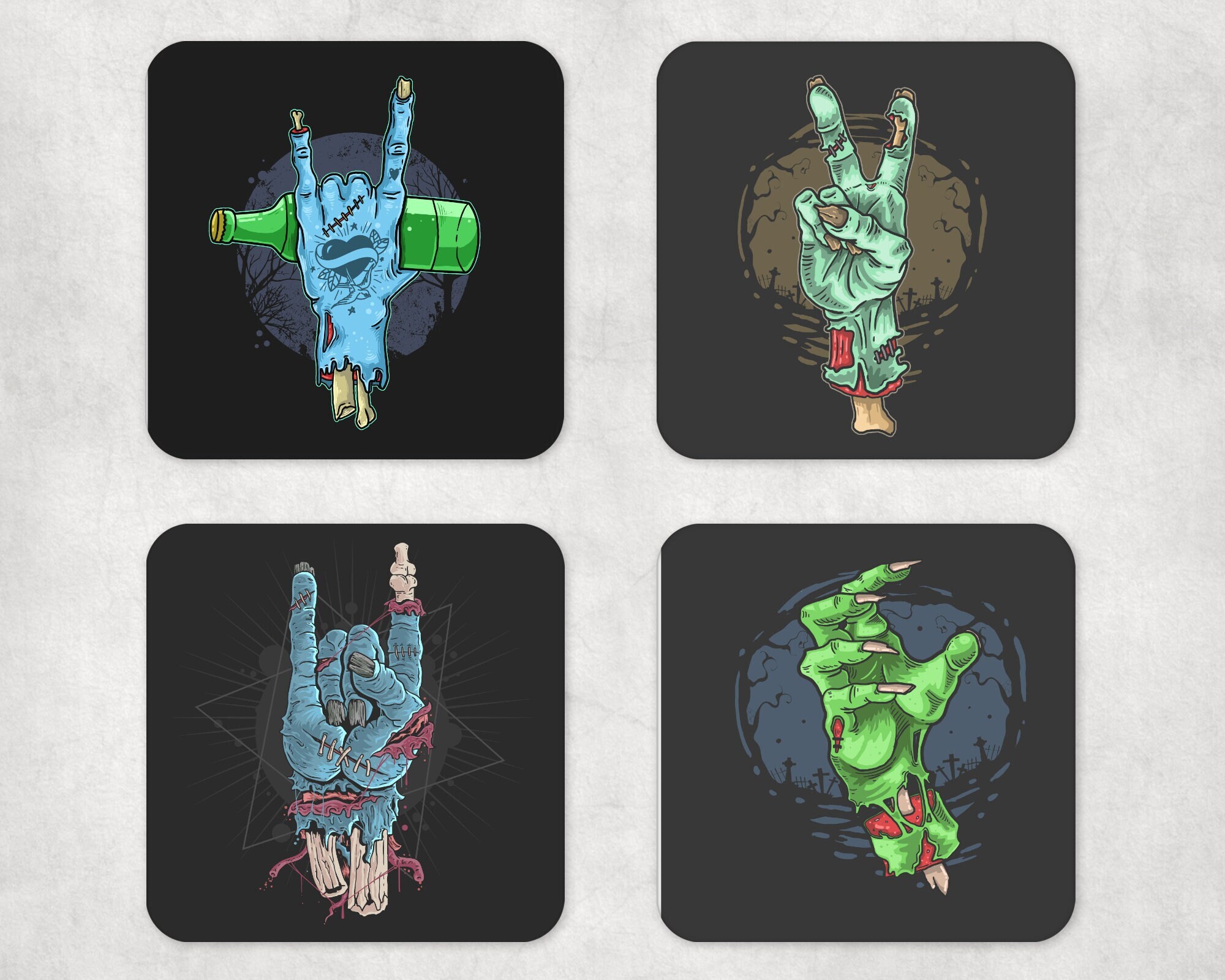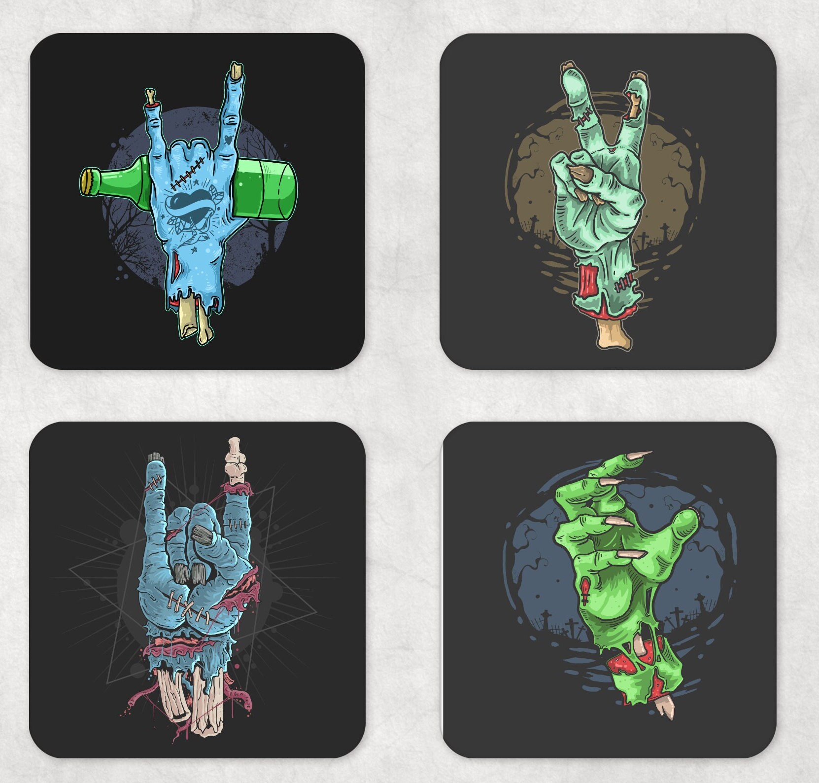 Set of 4 Skeleton Hand Coaters, Great for Halloween parties or any horror lover. Ideal for home bar Available on own or in a set ideal gift