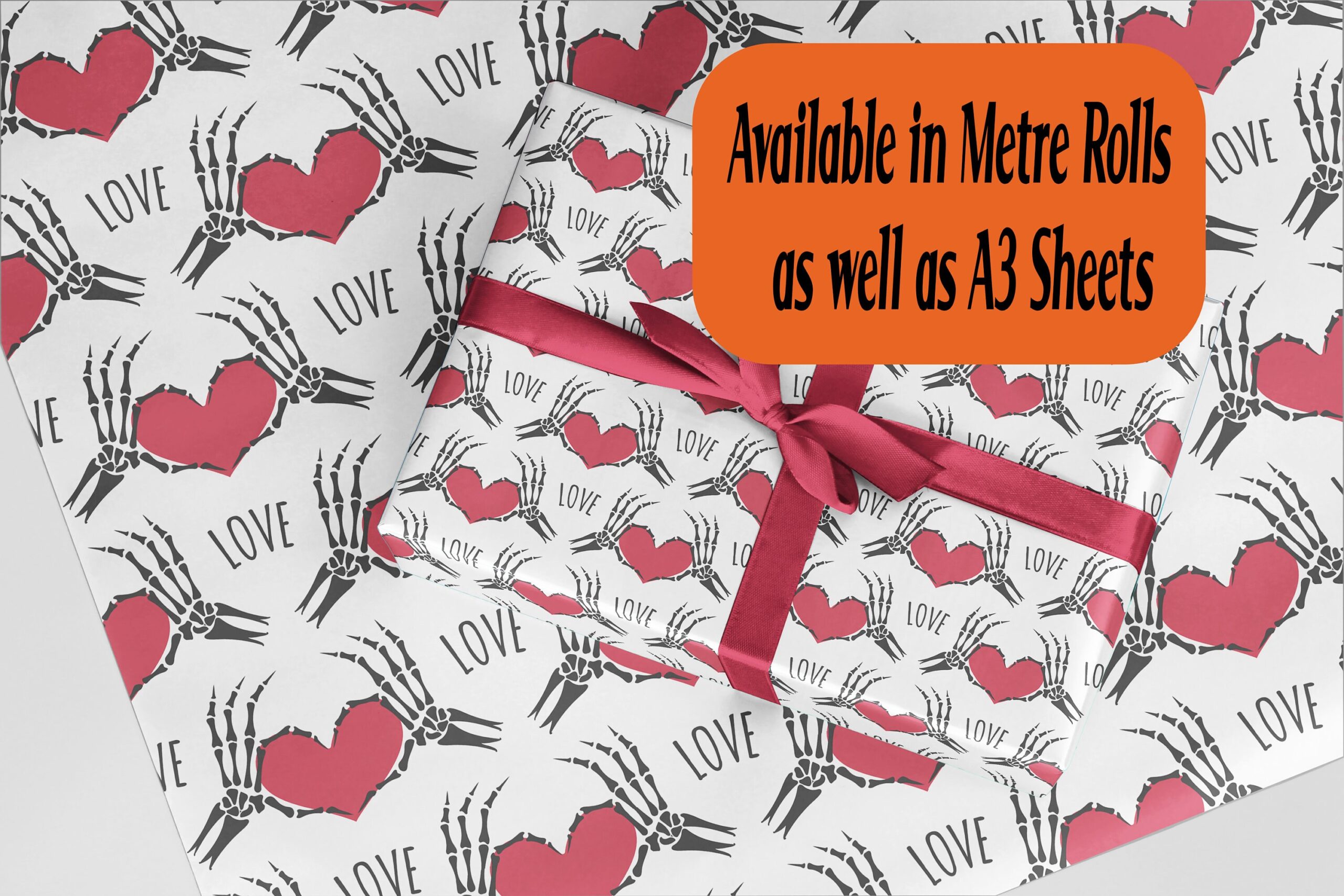 Skeleton Hand Heart Love design Wrapping Paper Eco friendly thick quality gift wrap paper Perfect Birthday Valentine Xmas presents