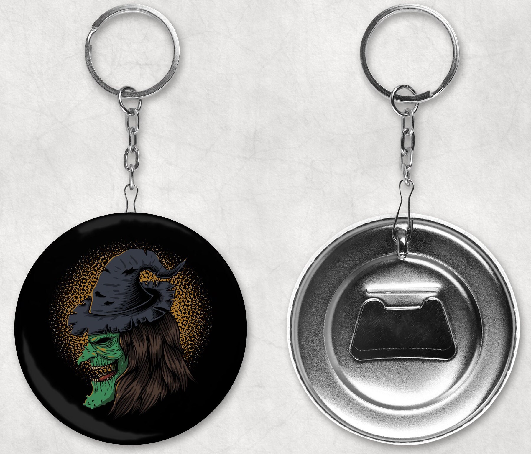 Image is on the front with metal bottle opener and keyring chain on the reverse.