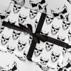 Horror Wrapping Paper Black and White Skeleton Face design Eco friendly thick quality gift wrap paper Perfect Birthday & Christmas presents.