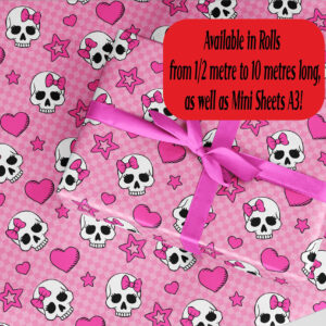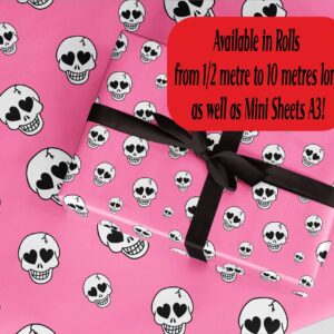 Skull with Pink Bow & Heart design Wrapping Paper. Eco friendly thick quality gift wrap paper Perfect Birthday Valentine Xmas presents.