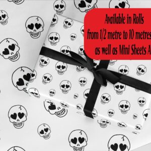 Skull with Heart Eyes White design Wrapping Paper. Eco friendly thick quality gift wrap paper Perfect Birthday Valentine Xmas presents.