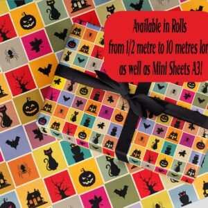 Fun Colourful Horror Cat Pumpkin Bat design Wrapping Paper. Eco friendly thick quality gift wrap paper Perfect Halloween & Xmas presents.