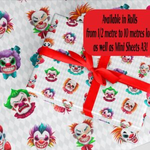 Horror Wrapping Paper. Scary Clown design. Eco friendly thick quality gift wrap paper. Perfect for wrapping Birthday Christmas presents.