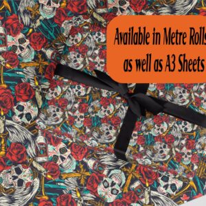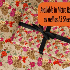 Gothic Wrapping Paper. Skull Flowers design Eco friendly thick quality gift wrap paper Perfect for wrapping Birthday Christmas presents.