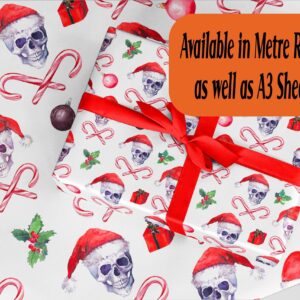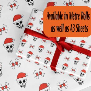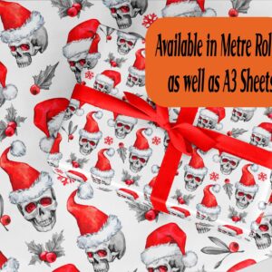 Christmas Wrapping Paper. Skulls with santa hats design. Eco friendly thick quality gift wrap paper. Perfect for wrapping Xmas presents.