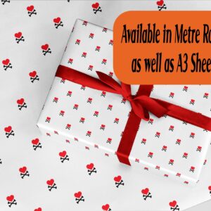 Red Heart on Crossbones design Wrapping Paper. Eco friendly thick quality gift wrap paper Perfect Birthday Valentine Xmas presents.