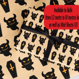 Cartoon Scary Ghosts and Coffins design Wrapping Paper. Eco friendly thick quality gift wrap paper Perfect Halloween & Xmas presents.