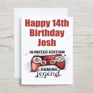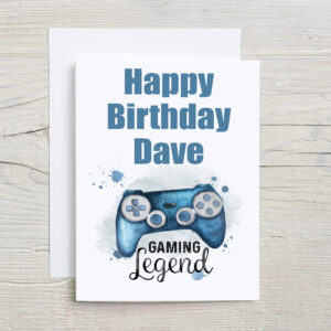 Gaming Legend Controller Personalised Kids Birthday Card. Controller image available in Red or Blue. Fun card idea for a Gaming Legend