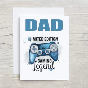Dad Gaming Legend Controller Greetings Card. Can be personalised Controller image available in Red or Blue Fun idea for a Gaming Legend