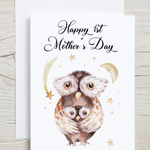 Happy 1st Mother’s Day Card with Owl and Owlet design. Baby’s first Mothers Day gift Cute Animal Card special Mum Day Mother & Baby Card