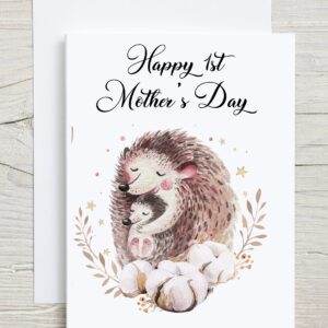 Happy 1st Mother’s Day Card with Hedgehog and Baby design. Baby’s first Mothers Day gift Cute Animal Card special Mum Day Mother & Baby Card