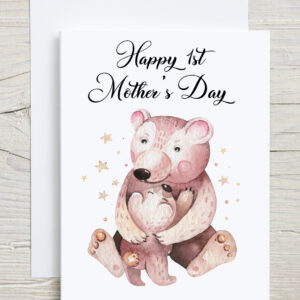 Happy 1st Mother’s Day Card with Bear with Cub design. Baby’s first Mothers Day gift Cute Animal Card for special Mum Day Mother & Baby Card