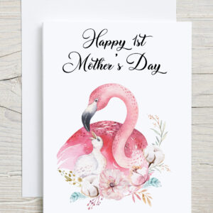 Happy 1st Mother’s Day Card with Flamingo and Baby design. Baby’s first Mothers Day gift Cute Animal Card special Mum Day Mother & Baby Card