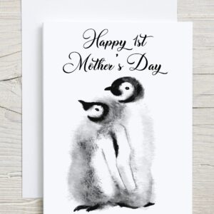 Happy 1st Mother’s Day Card with Penguin and Chick design. Baby’s first Mothers Day gift Cute Animal Card special Mum Day Mother & Baby Card