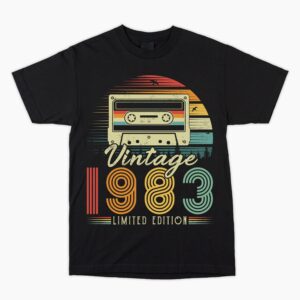 1983 Birthday Vintage Cassette 41st T Shirt. Hard to buy for present, Unusual Fun Retro Gift Him Dad Son Brother Uncle Nephew Cousin Friend