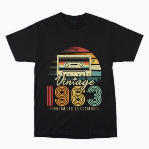 1963 Birthday Vintage Cassette 61st T Shirt. Hard to buy for present, Unusual Fun Retro Gift Him Dad Son Brother Uncle Nephew Cousin Friend