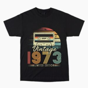 1973 Birthday Vintage Cassette 50th T Shirt. Hard to buy for present, Unusual Fun Retro Gift Him Dad Son Brother Uncle Nephew Cousin Friend