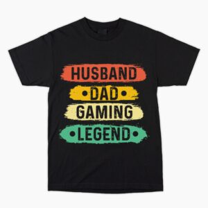 Husband Dad Gaming Legend T-shirt, Unusual Colourful Fun Gift Him Dad, Perfect Father’s Day Birthday Christmas Ideal for old school gamer