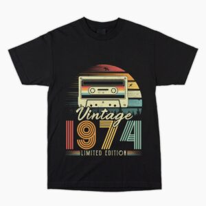 1974 Birthday Vintage Cassette 50th T Shirt. Hard to buy for present, Unusual Fun Retro Gift Him Dad Son Brother Uncle Nephew Cousin Friend