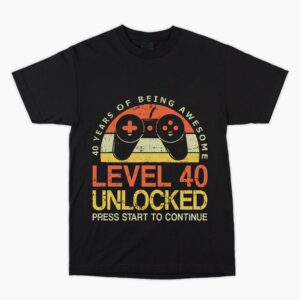 Level 40 Unlocked Gamer T Shirt 40th Birthday Hard to buy for present, Unusual Fun 1982 Gift Him Dad Son Brother Uncle Nephew Cousin Friend