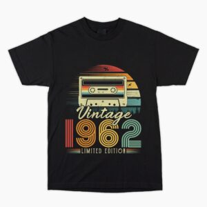 1962 Birthday Vintage Cassette 62nd T Shirt. Hard to buy for present, Unusual Fun Retro Gift Him Dad Son Brother Uncle Nephew Cousin Friend