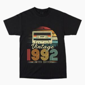 1992 Birthday Vintage Cassette 32nd T Shirt. Hard to buy for present, Unusual Fun Retro Gift Him Dad Son Brother Uncle Nephew Cousin Friend