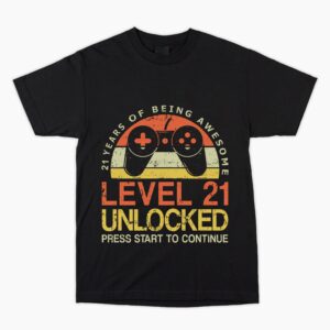 Level 21 Unlocked Gamer T Shirt 21st Birthday Hard to buy for present, Unusual Fun 2001 Gift Him Dad Son Brother Uncle Nephew Cousin Friend